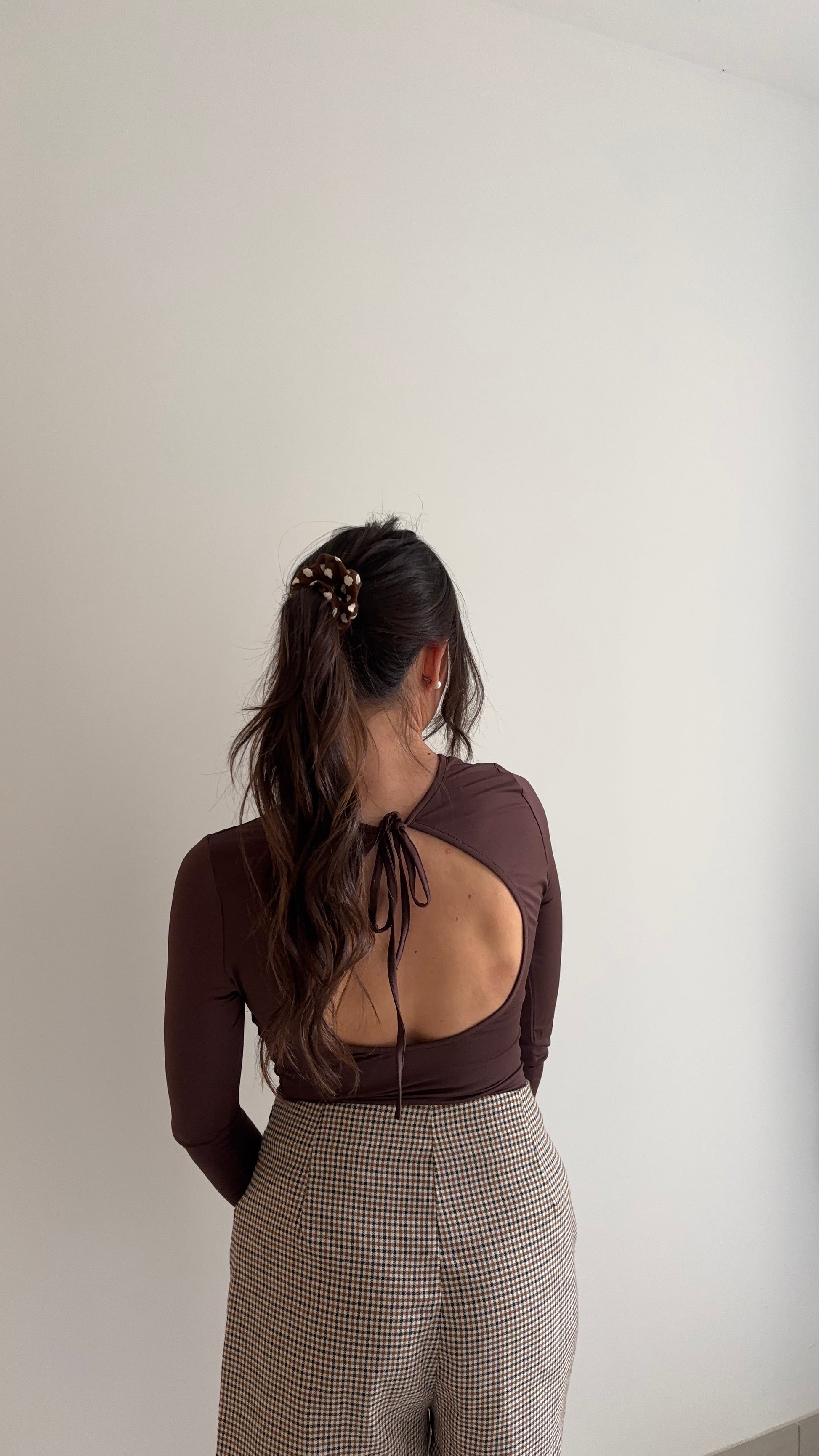 Un body élégant. Son dos ouvert dévoile juste ce qu’il faut de peau pour un effet subtil et raffiné. Idéal sous une veste structurée ou porté seul pour une allure assumée et féminine.