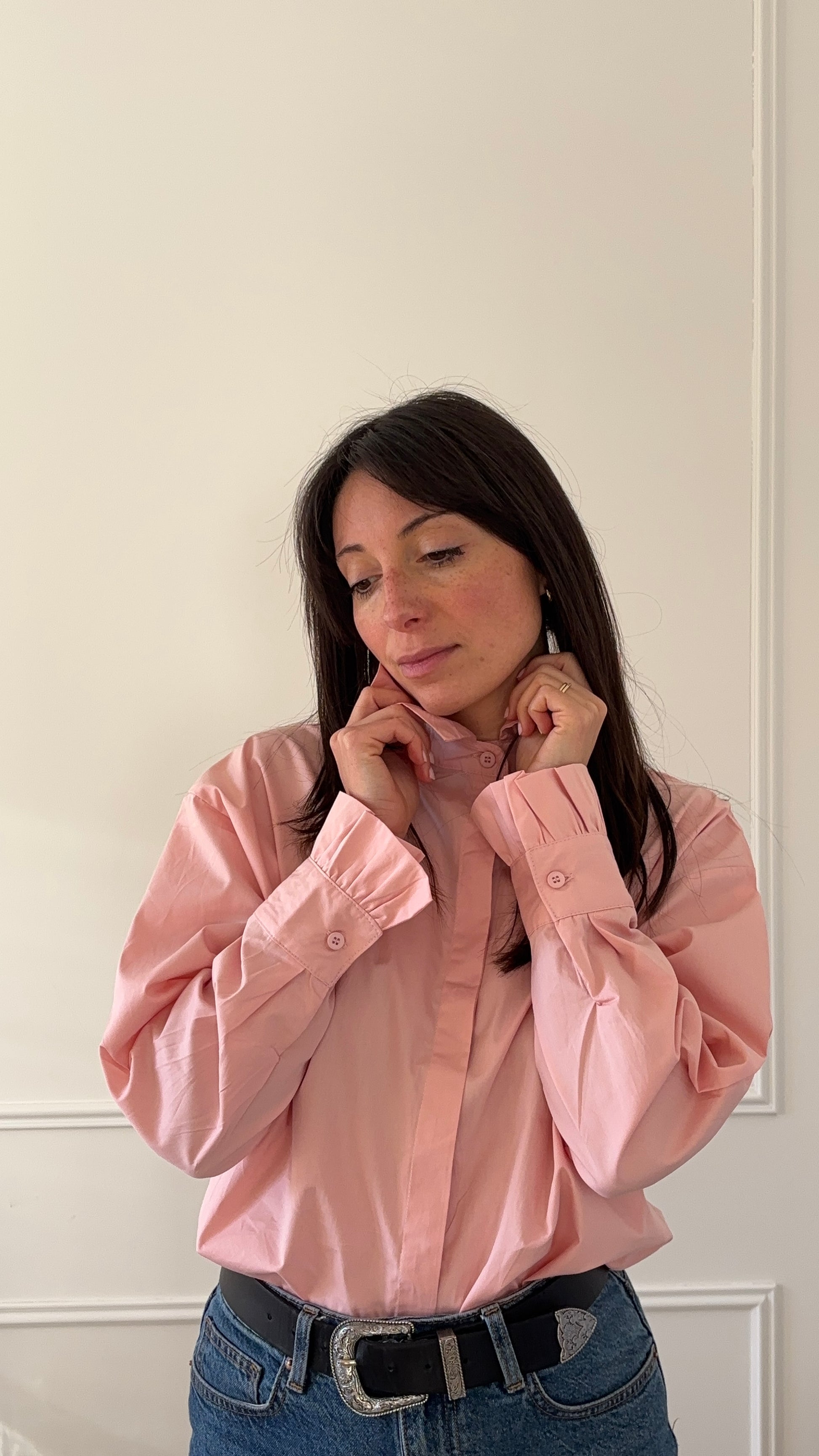 Chemise élégante au col cheminée, parfaite pour un look chic et moderne. Les détails aux manches ajoutent une touche originale tout en restant facile à porter au quotidien.