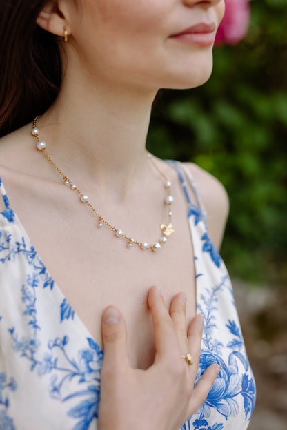 Collier à perles au style délicat et intemporel, à porter seul ou en accumulation. Idéal pour apporter une touche élégante à vos tenues.