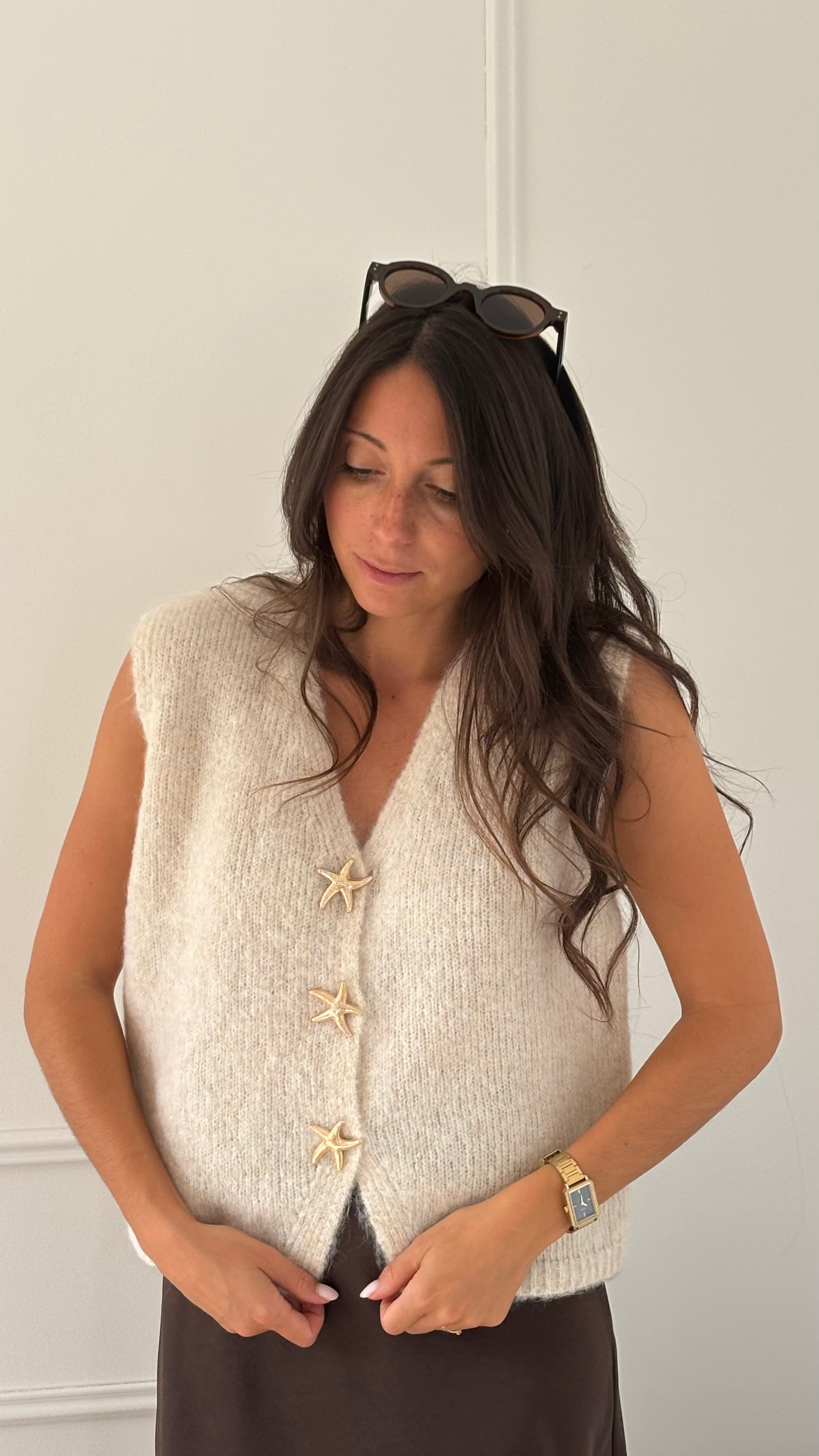Un gilet sans manches élégant et léger, parfait pour superposer et apporter une touche chic à toutes vos tenues. Sa coupe épurée le rend facile à associer avec chemises, t-shirts ou robes.