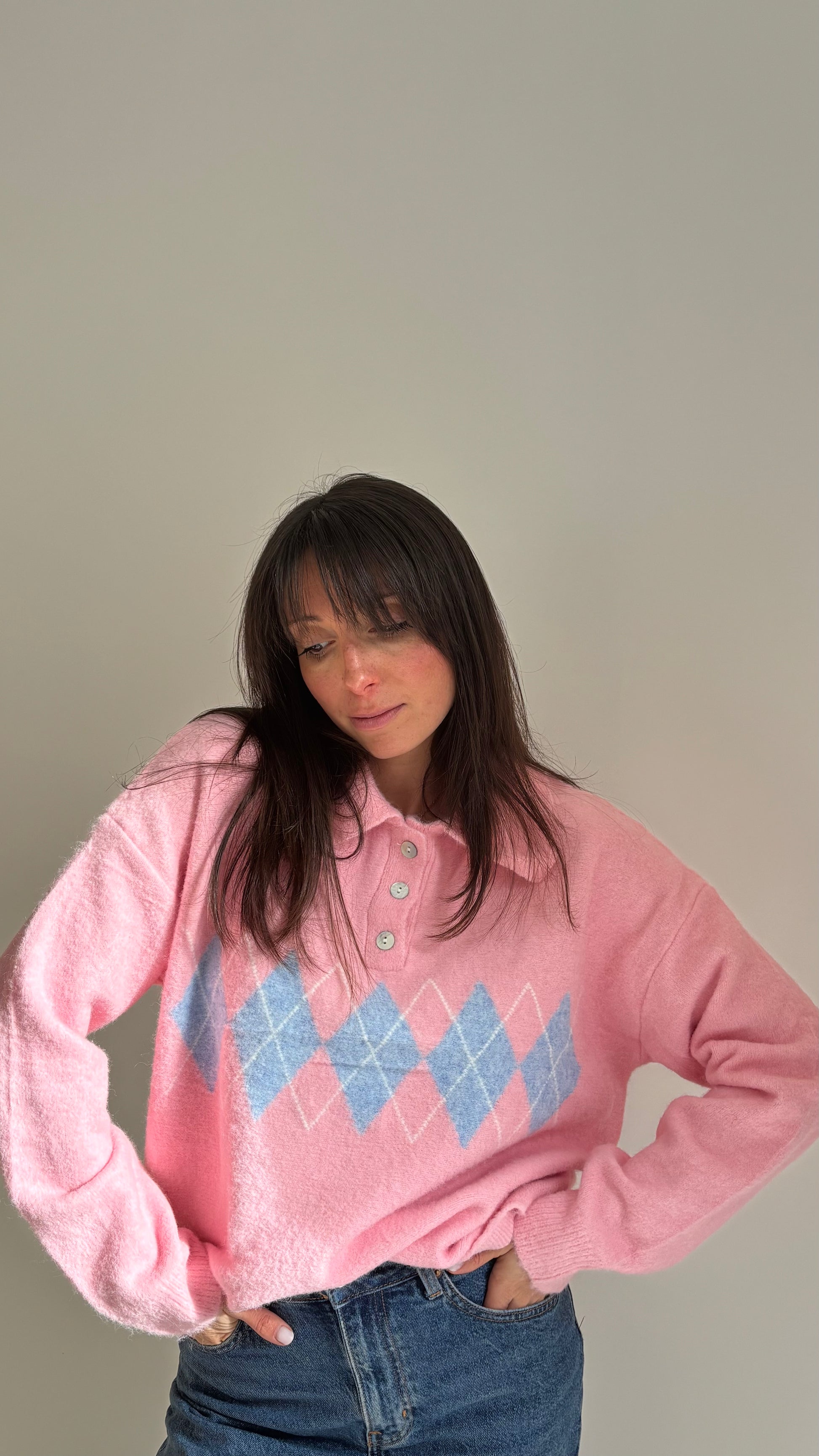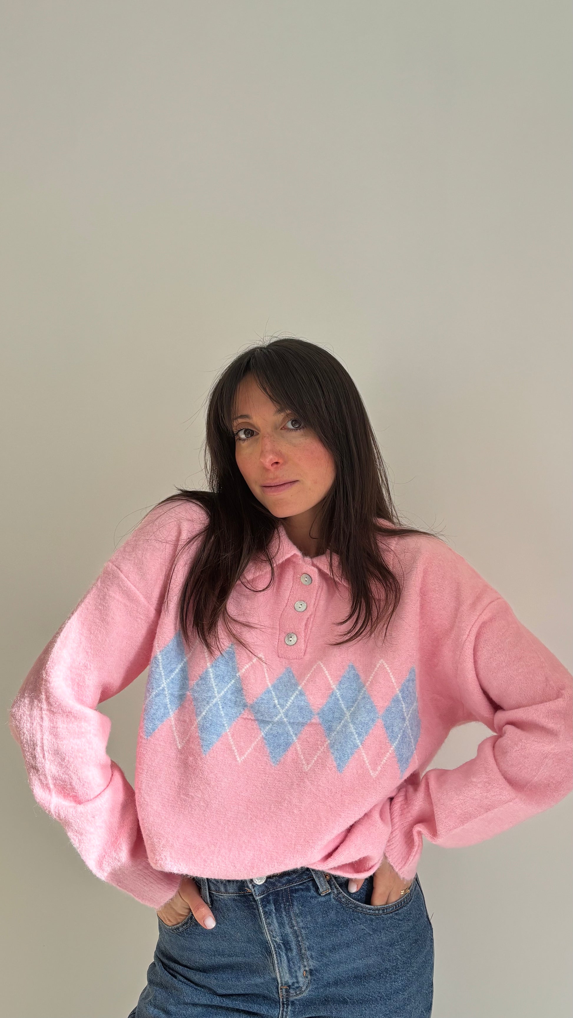 Pull style polo avec motif jacquard pour un look à la fois chic et tendance. Sa matière douce et légèrement stretch le rend confortable au quotidien. Facile à porter avec un jean ou un pantalon plus habillé.