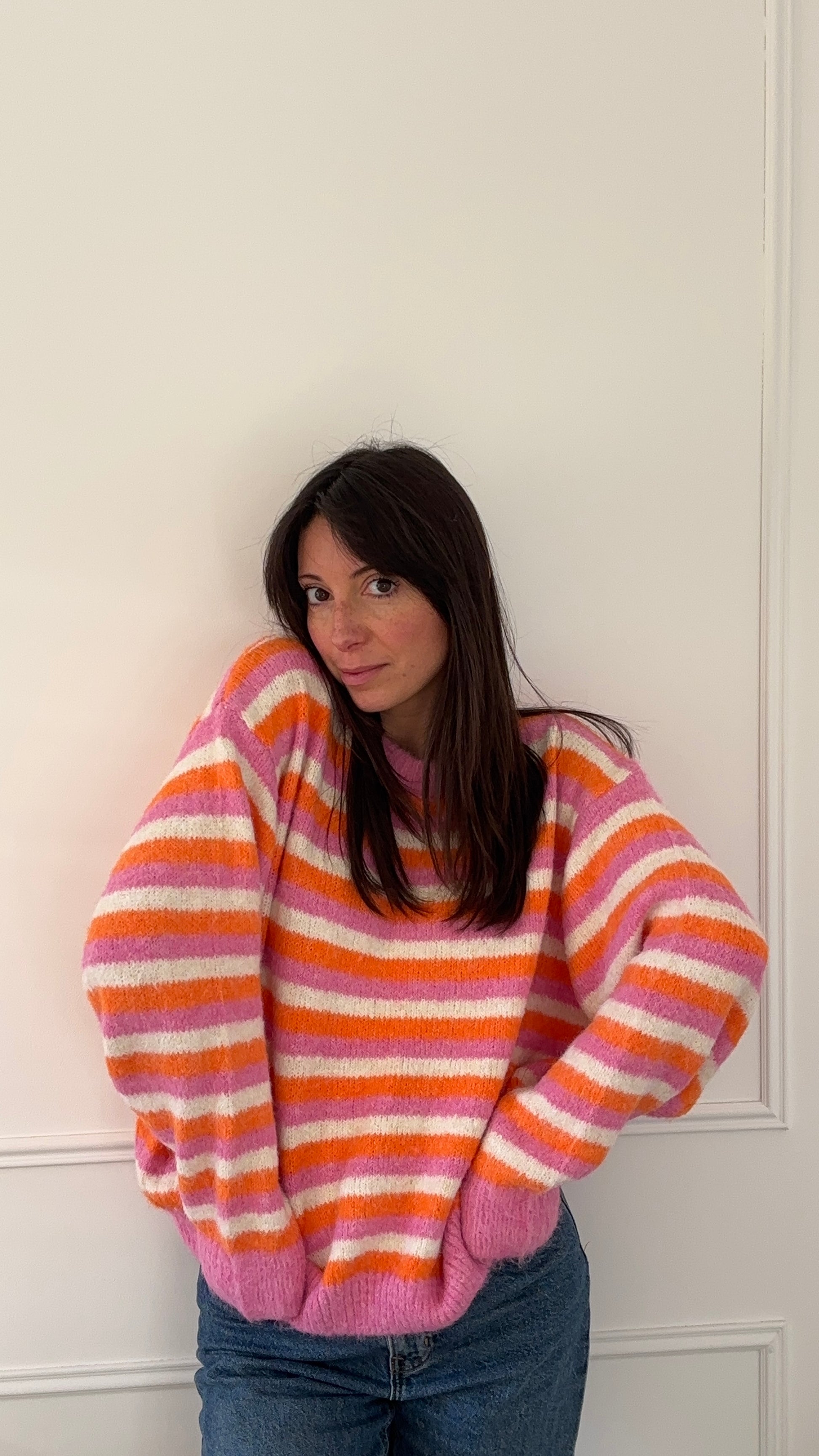Pull à rayures au style lumineux et facile à porter. Sa maille confortable accompagne les looks du quotidien tout en apportant une touche de couleur. Parfait avec un jean ou un pantalon clair pour une silhouette fraîche et moderne.