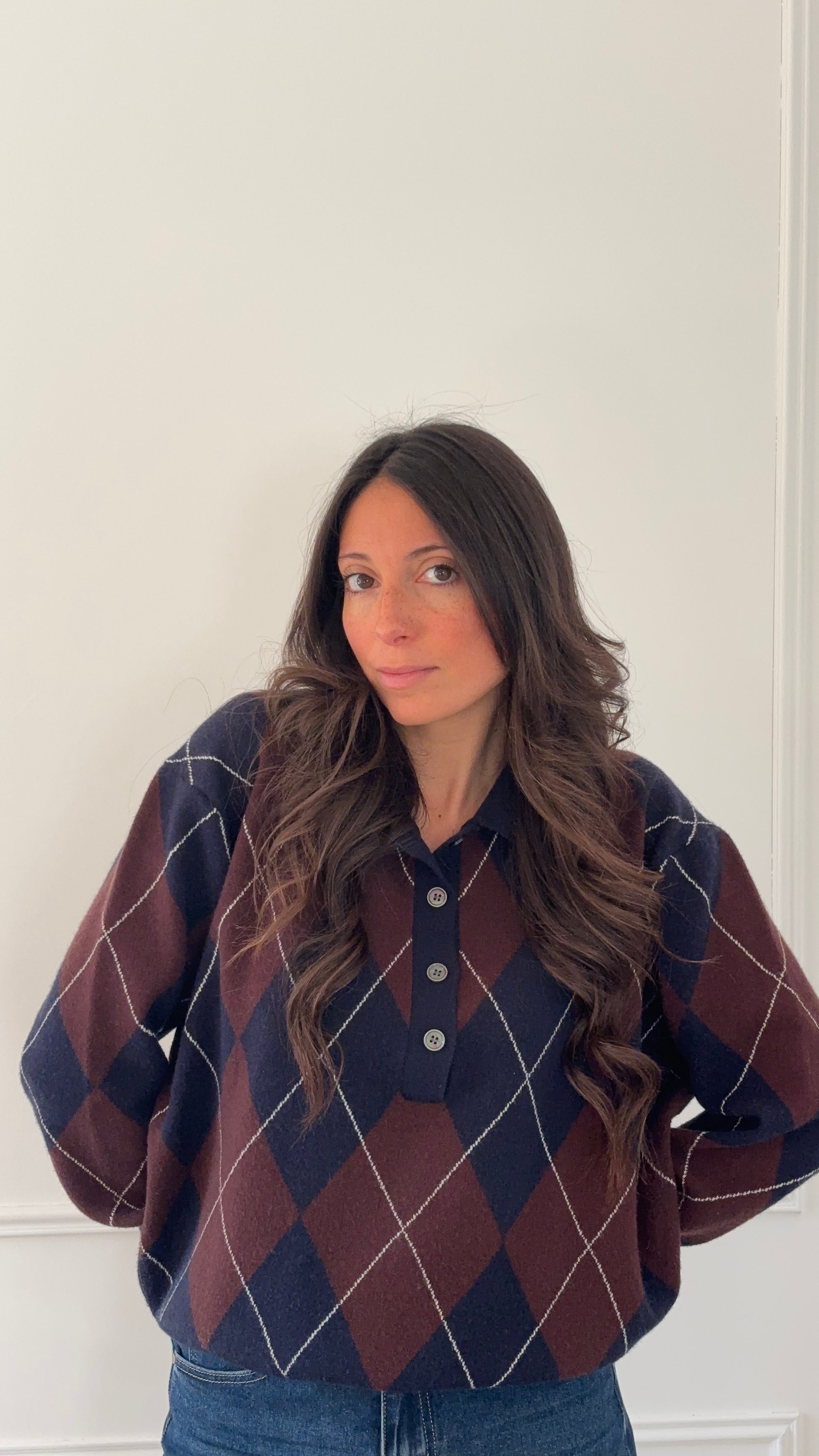 Pull à motif jacquard façon polo, avec une patte de boutonnage sur le devant. Sa maille douce et fluide apporte la juste dose de confort et de style.