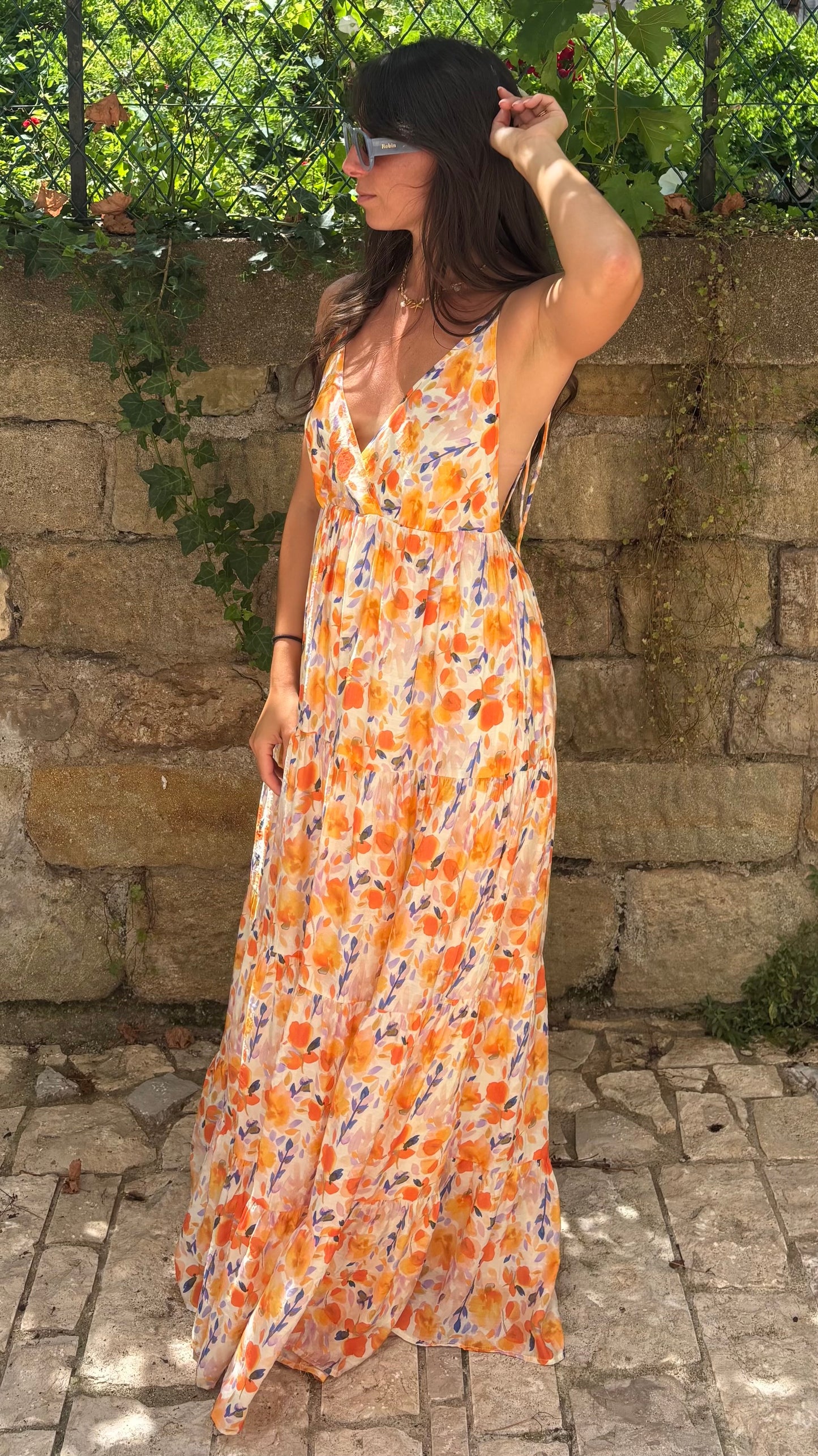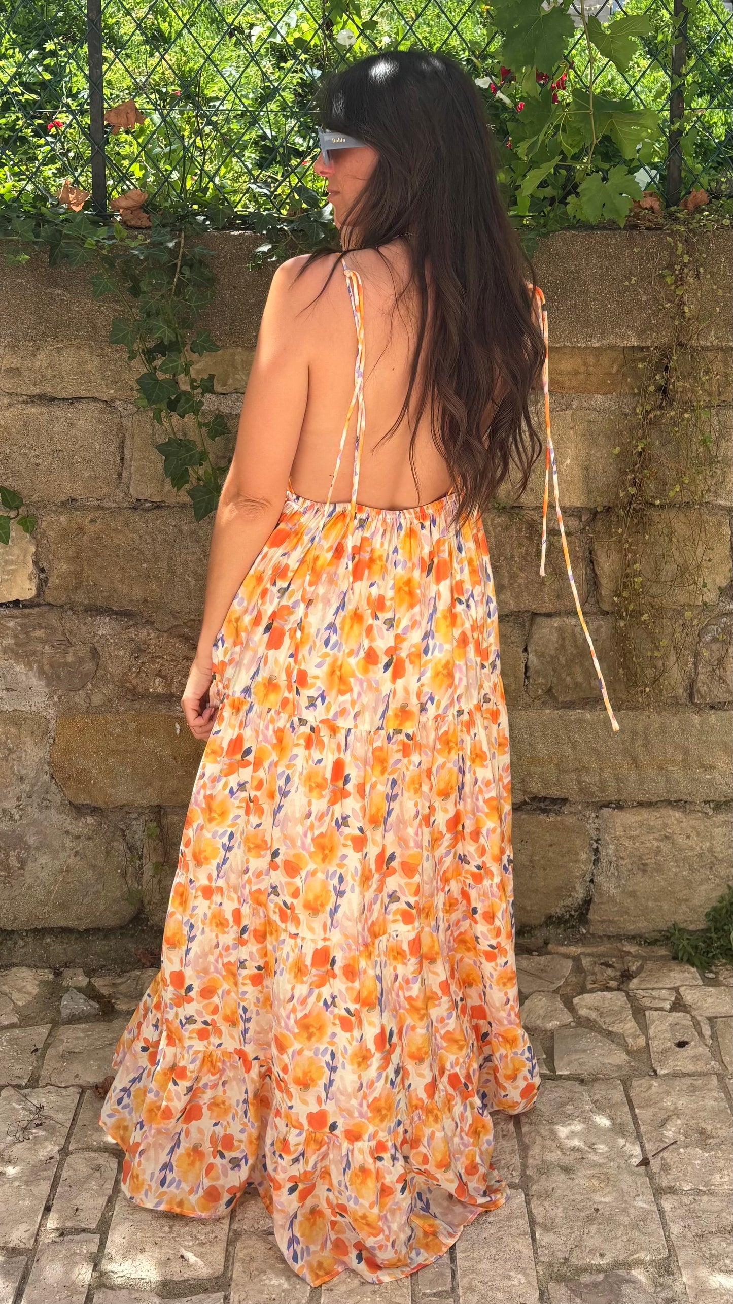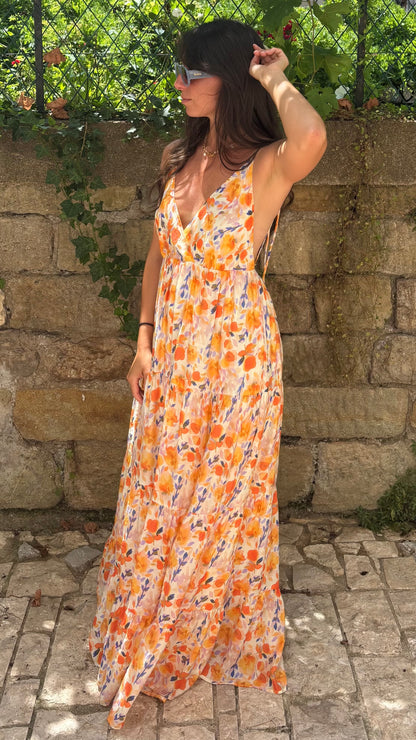 Coupe fluide, fines bretelles, ouverture dans le dos. Tissu léger et élégant.