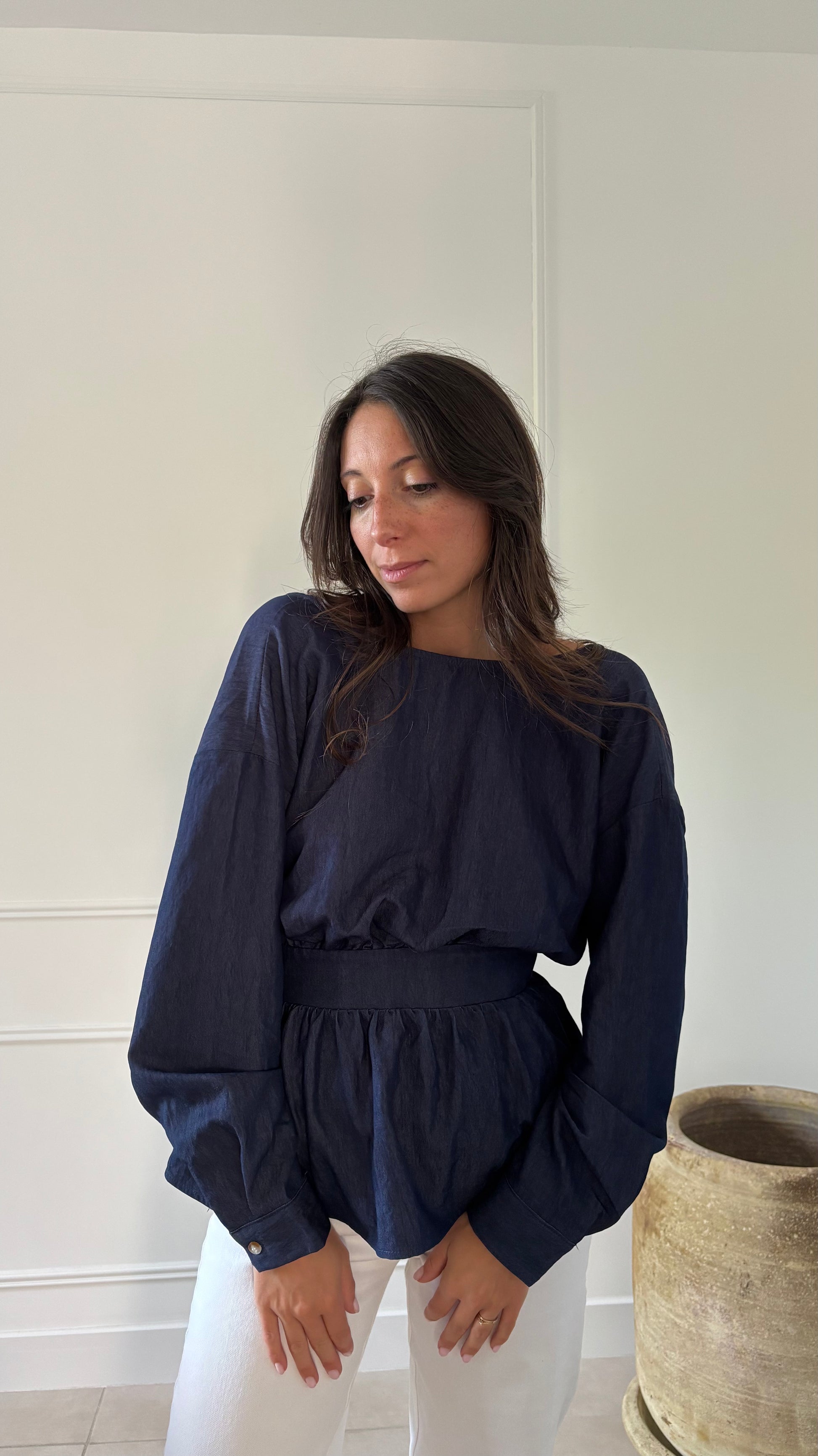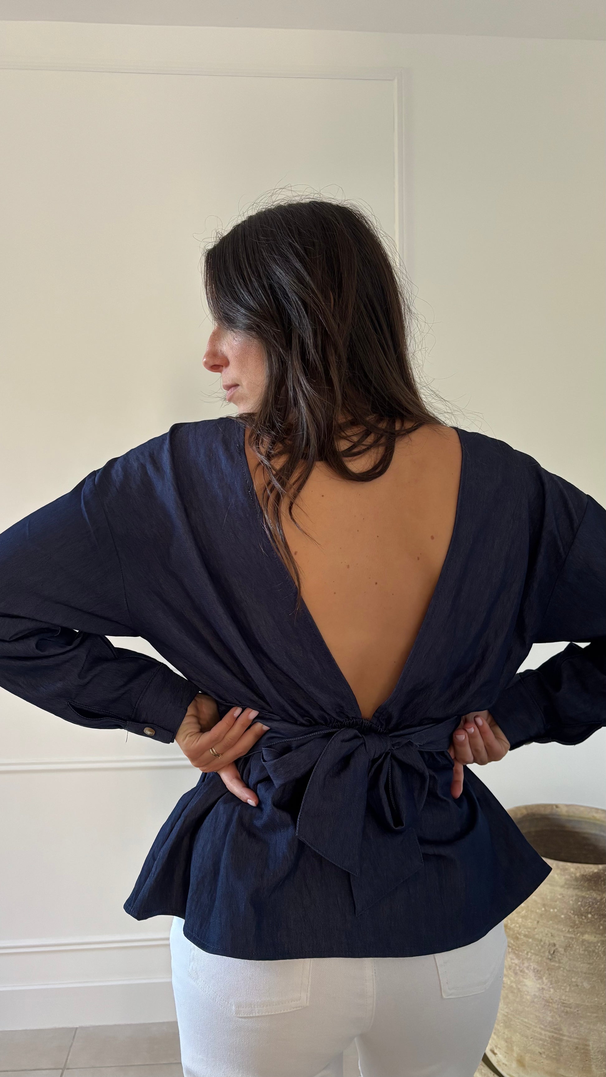 Haut manches longues, cintré à la taille pour une silhouette féminine. L’ouverture dans le dos apporte une touche subtile et élégante.